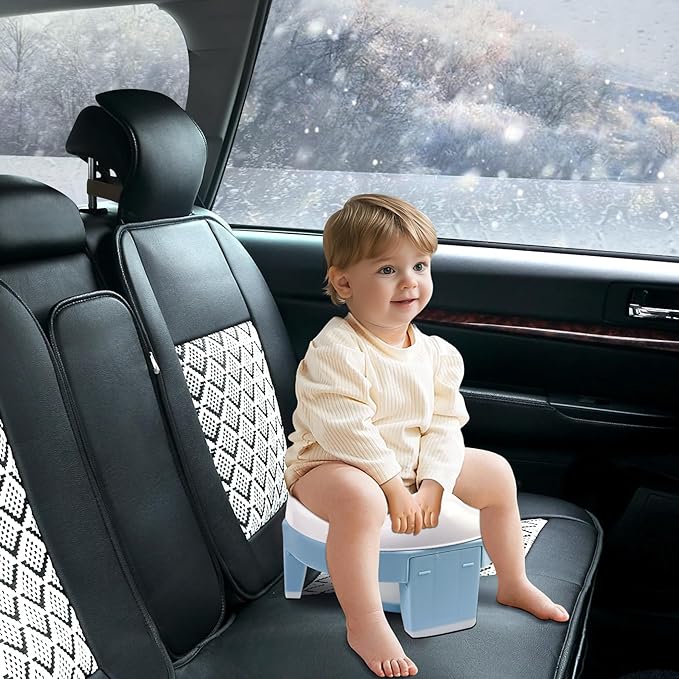 - CONVENIENT TO USE - This portable potty seat is easy for your little ones to use, it can use with disposable drawstring potty bags, which the package including 20 packs, and makes potty mess-free. With splash guard design, no matter boy or girl can use it to prevent urine from out