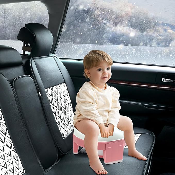 - CONVENIENT TO USE - This portable potty seat is easy for your little ones to use, it can use with disposable drawstring potty bags, which the package including 20 packs, and makes potty mess-free. Beautiful pink for your princess