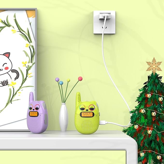 - šš¹š²š®šæ š¦š¼šš»š± & šš š„š®š±š¶š¼: The rechargeable walkie talkies for kids 3 pack feature with FM radio, your kids would search channels and listen to music or real-time news on the FM. The sound is so clear that you could hear each other within 2 miles range.