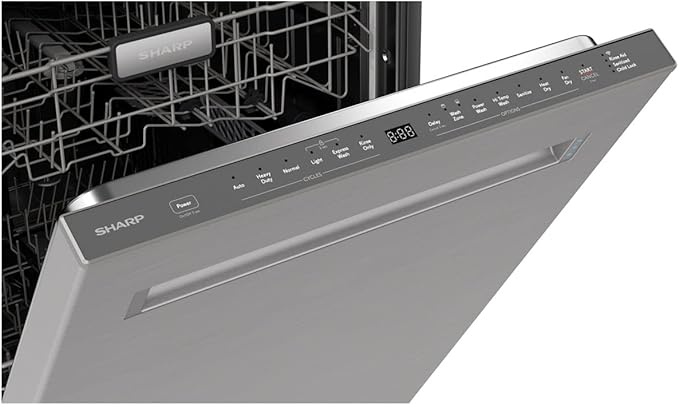 SHARP SDW6767HS Smart Dishwasher Works with Alexa. Includes LED Interior lights, Stainless Steel interior, Heated Dry with Fan Assist, Wash Zone cleans half load on either rack, Adjustable Third Rack