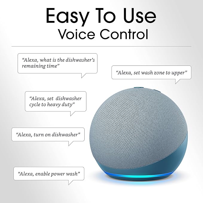 - ALEXA VOICE CONTROL WITH SMART SPEAKER OR ALEXA APP: This dishwasher easily connects to your Echo device to control your dishwasher with simple voice commands. Amazon Echo device not included.