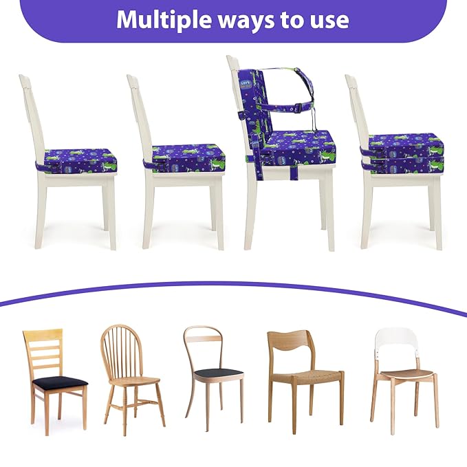 - WIDELY USED: The thickness/ firmness of the cushion and large size means that it works for a variety of ages. Older children can skip getting buckled in and just use the cushioned seat. This versatility ensures that the booster seat can be used with a variety of dining chairs and tables, making it suitable for different households or when dining out. It arrives vacuum packed, expands immediately and recover to its original height within 24-48 hours once you open the plastic