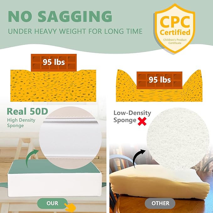 - 【REAL 50D Sponge, ZERO Sagging】The Booster Seat from Sylynvia Brand is of REAL 50D high-density sponge, which ensures softness and comfort while being able to withstand a weight of 80 pounds and will not sag when sitting for a long time, providing excellent support.This means that it has a long service life and your baby can use it from the age of 1 to 8 years old.