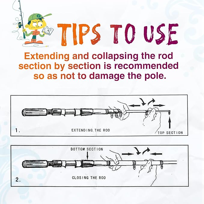 - Convenient Portability: Our collapsible fishing rod makes it easy to transport and store, and you can pack all your fishing accessories into one fishing bag, and you can take them wherever you want, and the fishing bag also provides added protection while on the go. Tips: Extending and collapsing the rod section by section is recommended so as not to damage the pole