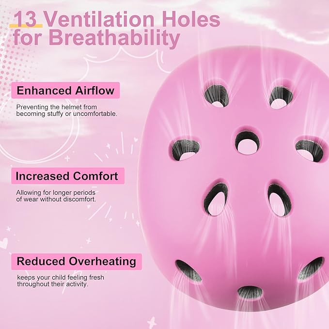 - Superior Safety with PC Shell: Unlike ABS helmets, Vvinca bike helmet features an in-mold PC shell combined with an EPS foam liner. This design ensures the helmet won't delaminate, offering a lightweight yet sturdy option that's perfect for children. The helmet is equipped with 13 ventilation holes, preventing overheating and providing comfort even during extended wear