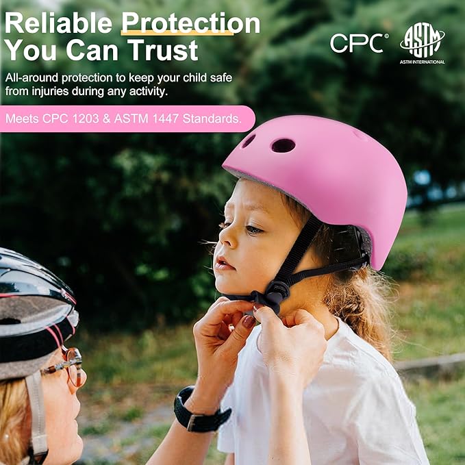 - Certified for Safety: Our helmet meets U.S. Consumer Product Safety standards, with dual certifications from CPSC 1203 and ASTM 1447, guaranteeing reliable protection. The adjustable head circumference (18.89"-21.25"/48-54cm) and easy-to-use dial adjustment system make it perfect for children aged 3-8