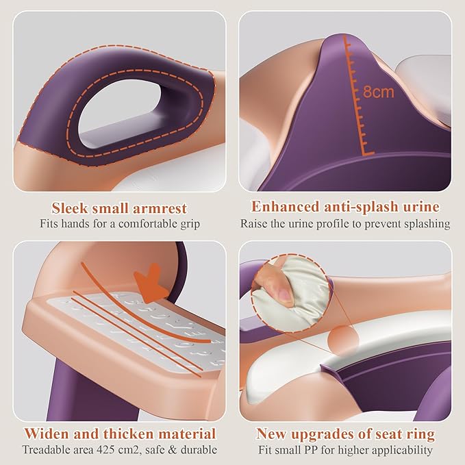 - Stable, Safe and Non-Slip: The four corners of the bottom of the toilet training seat for toddlers baby are non-slip to ensure safety and stability so that your child can use the potty step stool safely. Thickened material, more durable. Widened pedal area, convenient for toddlers to turn around and sit down, more assured to use