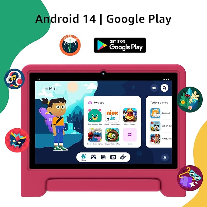 - STUNNING DISPLAY FOR LEARNING AND PLAY:The 10.1” HD IPS screen offers vibrant visuals, perfect for exploring apps, watching educational videos, or enjoying fun games. Powered by Android 14, this tablet delivers a seamless, child-friendly experience.