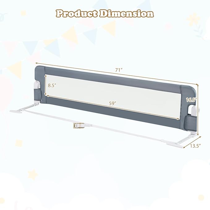 - [ Protect Your Baby's Safety ]: This extra-long bedrail is 71 inches long for added safety. When your kids sleep alone at night, it can provide them with the best protection and safe sleeping environment. It is your kid's safety guard, so you don't have to worry about your baby falling off the bed.