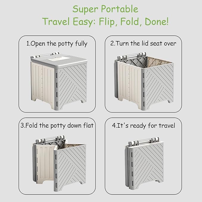 - Hygienic & Hassle-Free Cleanup: The storage compartment built into the potty seat's lid comes with 1 roll of cleaning bags. Simply seal and discard waste without direct contact—perfect for emergencies or public restroom avoidance.
