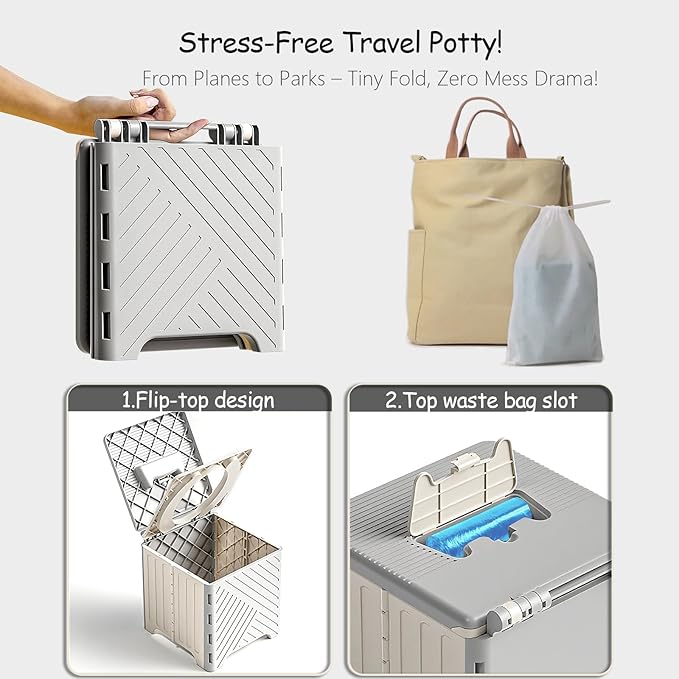 - ON-THE-GO Emergency Solution: Be ready for sudden stops! This portable potty seat for toddler travel sets up in seconds as a car potty, camping toilet, or park seat. It eliminates restroom anxiety during travel, hikes, camping.