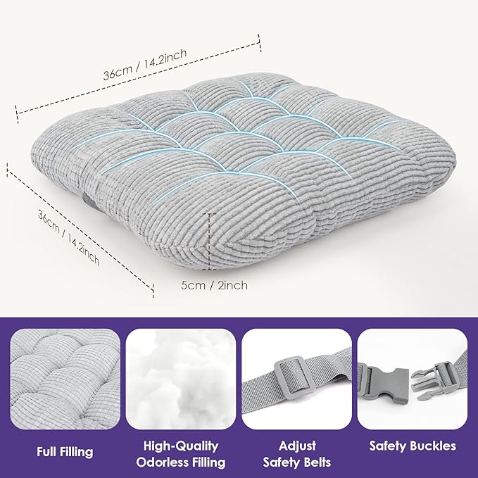 - đă2 Adjustable Straps + Non-Slip Bottom for Safetyă:Equipped with 2 Adjustable Safety Buckles and a non-slip bottom,at the same time, the length of the bottom seat belt is appropriately increase, so the cushion can be better fixed on the most dining chair.This booster seat for chair stays firmly in placeâno sliding forward or sideways. Perfect as a booster chair for dining table, booster chair for toddlers 2-12, or booster seats for kitchen chairs at home or while traveling.