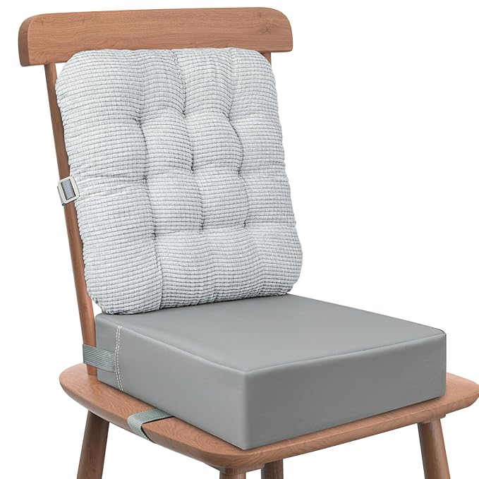 - đȘăUpgrade 2-in-1 Toddler Booster Seat for Kitchen Chair & Dining Tableă:This toddler booster seat includes a seat cushion + backrest set designed for most kitchen chairs and dining room chairs. Compared to other single booster seats, our kitchen chair booster seat adds a Separable backrest cushion, helping them maintain proper sitting posture.Whether it's breakfast, lunch, or dinner time, this dining chair booster seat toddler offers the ideal elevation and support for children aged 2-12 years.